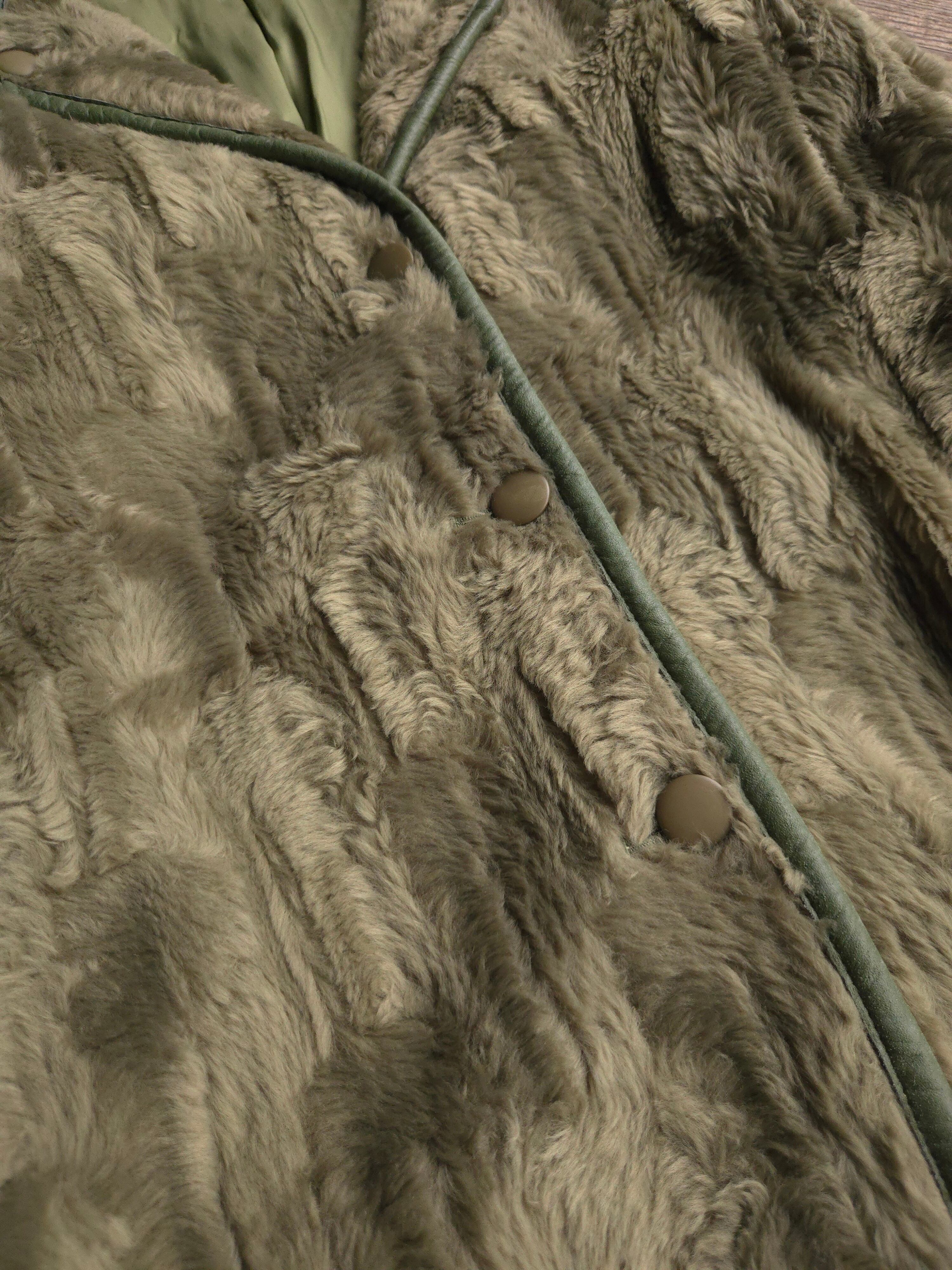 • カーキトーンのフェイクファーが高級感と暖かみを両立